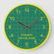 The quilt maker or seamstress in your life will love this personalized clock for the sewing room. It's a classic green cutting mat design printed with strong yellow easy to read face numerals. Round design comes in two sizes. See also the square clock and many other unique sewing themed clocks in this collection at Clock O Rama on Zazzle.