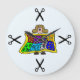 Here's a fun clock for the sewing room whether you make quilts or not. It features a woman showing off the quilt she made. The 12, 3, 6 and 9 are marked by scissors. I have this on a very light blue background, but you can change that color to white or any other light color you prefer. Designed by Sheila Cicchi, Brownielocks.com. All Rights Reserved.