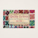 Cute, colorful stylized patchwork quilt or quilted blocks and faux aged, shabby watercolor paper nameplate on this business card for a quilter, quilting or quilted products, personalized with your info front and back.