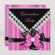 Quinceanera 15th Pink Silver Black Bow Diamonds Invitation