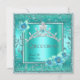 Quinceanera 15th Teal Blue Flower Silver Tiara Invitation