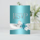 Quinceanera 15th Teal Blue Silver White Bow RSVP Invitation