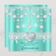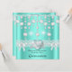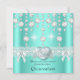 Quinceanera 15th Teal Silver Heart Diamonds Invitation
