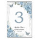 Quinceañera Baby Blue Floral Silver Butterflies Table Number