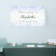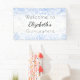 A welcome banner for a girly and glamorous Quinceañera, 15th birthday party. A white background decorated with light blue, baby blue faux glitter dust. Personalize and add a name and age. Black letters.