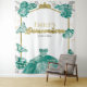 Introducing the Gilded Tiara Geometrical Frame, a stunning backdrop designed for a Quinceañera celebration. This exquisite piece features an elegant emerald green dress adorned with beautiful floral and butterfly accents, making it perfect for capturing memorable moments. Its easy-to-personalize design allows you to tailor it to reflect your unique style and theme. Designed by CaMiDesigns, this backdrop is sure to elevate your special day. For assistance with orders, shipping, product information, and more, please contact Zazzle Customer Care directly.