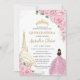 Quinceañera Birthday Pink Floral Paris Eiffel Gold Invitation
