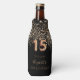 A cooler for a girly and glamorous Quinceañera, 15th birthday party with the girls. A chic black background with faux gold glitter spots.The name is written in a golden color with a modern hand lettered style script. Personalize and a date and name. Number 15 is written with a balloon style font.