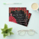 A girly and trendy Save the Date for a Quinceañera, 15th birthday party. A black background decorated red roses, red faux glitter sparkles and a red dress. Personalize and add a date and name/age. The text: Save the Date is written with a large trendy hand lettered style script.