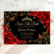 Black red roses and gold Quinceanera celebration Save The Date card. Features, script font, butterflies, watercolor flowers and tiara. Perfect for an elegant princess style glam celebration. Personalize with your own details. Printed Zazzle cards or instant download digital printable template.
