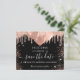 A girly and trendy Save the Date card for a Quinceañera, 15th birthday party. A black background decorated with blush rose gold drips, sparkles, and balloons. Personalize and add a date and name/age. The text: Save the Date is written with a large trendy hand lettered style script.
