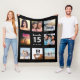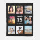 A unique gift for a girl's Quinceañera, 15th birthday, celebrating her life with a collage of 8 of your own photos, pictures. Personalize and add her name and a date. A chic black background. The name is written with a modern hand lettered style script. Number 15 with faux silver balloon style font.