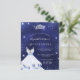 A modern, stylish and glamorous invitation for a Quinceañera, 15th birthday party. A midnight blue background with faux glitter dust, a tiara and a dress. The blue color is uneven. The name is written with a modern hand lettered style script. Personalize and add your party details.
