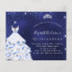 A modern, stylish and glamorous invitation for a Quinceañera, 15th birthday party. A midnight blue background with faux glitter dust, a tiara and a dress. The blue color is uneven. The name is written with a modern hand lettered style script. Personalize and add your party details.