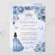 Quinceañera Blue Silver Floral Watercolor Invitation