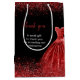 This chic Gift Bag features a beautiful bright red themed elegant watercolor dress gown on a black background with faux glitter at the top and bottom on both sides with a special message on each side. The text can be personalised to suit your own requirements.