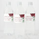 A Quinceanera water label with a burgundy red, glitter and floral design. This water label can be can be personalized with your information.