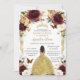 Quinceañera Burgundy White Gold Floral Brown Girl Invitation