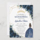Quinceañera Chic Navy Blue Floral Princess Crown Invitation