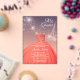 CLEAR ACRYLIC INVITATIONS! A deep coral dress on a starry night sky background featuring the Eiffel Tower, these Quinceañera birthday party invitations are perfect for any princess' 15th birthday. MATCHING items in our collection.