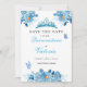 Announce your special day with elegance using this Quinceañera Crown Baby Blue Floral Butterflies Save the Date. Adorned with a regal crown, delicate baby blue florals, and graceful butterflies, this design beautifully captures the essence of your celebration. Personalize it to make your event as unique as you are!