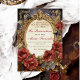 Inspirado en castillos antiguos y en la fantasía oscura, este diseño presenta un lujoso marco barroco dorado que contrasta dramáticamente con la acuarela de rosas carmesí sobre un fondo sombrío y distinguido.