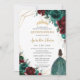 Quinceañera Emerald Green Burgundy Floral Gold Invitation