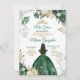 Quinceañera Emerald Green Butterfly Gold Crown Invitation
