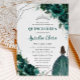 Quinceañera Emerald Green Floral Silver Princess Invitation