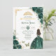 Quinceañera Emerald Green Gold Floral Princess Invitation