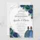 Quinceañera Emerald Green Royal Blue Floral Twins Invitation