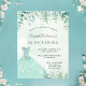 A trendy invitation for a Quinceañera, 15th birthday party, enchanted forest theme. A green watercolored background with ferns and eucalyptus greenery, a green dress. The name is written with a modern hand lettered style script. Personalize and add your party details.