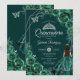 Quinceanera Floral Emerald Green Silver Dress Invitation