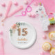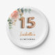 Quinceanera floral rose gold eucalyptus monogram paper plates