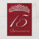 Quinceañera in silver / pewter font with dark red background and silver sparkly crown.