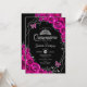 Quinceanera Fuchsia Pink Black Silver Floral Invitation