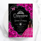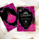 Quinceanera Fuchsia Pink Silver Dress Floral Invitation
