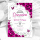 Quinceanera Fuchsia Pink Silver Floral Invitation