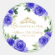 Quinceanera Gold Tiara Royal Blue Floral Classic Round Sticker