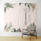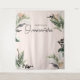 Use as a backdrop for your photo booth or as a welcome banner! A wonderful personalized touch for behind the head table. Wall tapestries make great statement pieces as both home and event decor. Featuring blush pink background, touches of terra cotta and beautiful jungle foliage.
