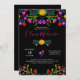 Quinceanera Mexican Fiesta Colorful Floral Black Invitation