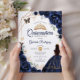 Quinceanera Navy Blue Floral Dress Gold Invitation