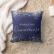 A pillow for a Quinceañera, 15th years old girls room. A navy blue background with faux silver glitter dust. The blue color is uneven. The text: Quinceañera is written in white with a large modern hand lettered style script. Personalize and add a name.