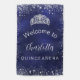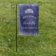 A welcome flag for a girly and glamorous Quinceañera, 15th birthday party. A navy blue background with elegant faux silver dust and a tiara, crown. The blue color is uneven. Personalize and add a name and age. White letters. The name is written with a modern hand lettered style script.