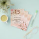 A rose gold, blush pink rustic faux metallic looking background. Decorated with rose gold and pink florals, roses, pampas grass. Personalize and add a name and party details. Number 15 is written with a balloon style font.