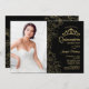 Quinceanera Party With Photo - Black Gold Floral Invitation