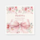 A cream, beige background color. Decorated with a large pink bow and pink flowers. Personalize and add the name and date.