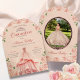 Elegant Quinceañera invitation featuring a pink ball gown with delicate watercolor roses. A romantic design, perfect for Sweet 15 celebrations. Fully customizable.