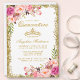 Quinceanera Pink Floral Gold Glitter Crown Invite