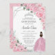 Quinceañera Pink Floral Princess Silver Birthday Invitation